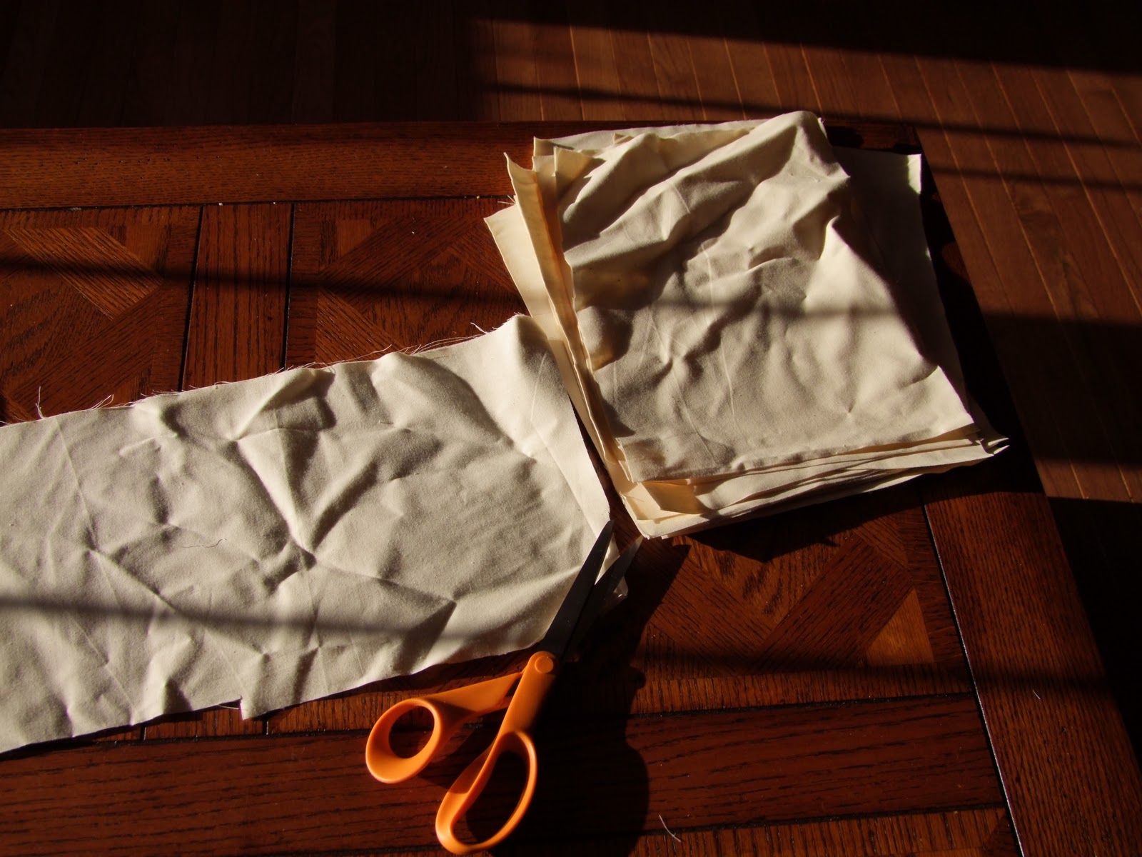Next we needed goody bags, not plastic here, I cut muslin squares.