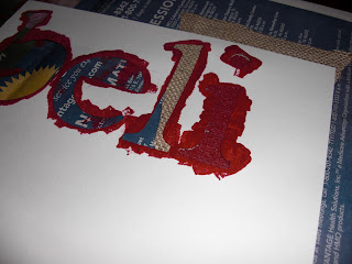 Once all the letters were dry I rip material and sew the triangles to the material. Very simple and prim looking. We will hang these one on top of the other for a layer effect. Actual party photos to come later!